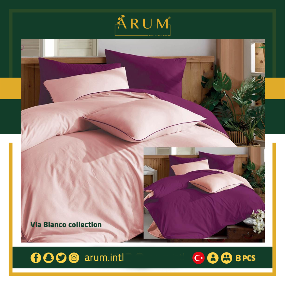 - يأتي طقم سرير مطرز بوجهين سادة بألوان عصرية والذي يضفي لمسة من الأناقة على غرفة نومك.